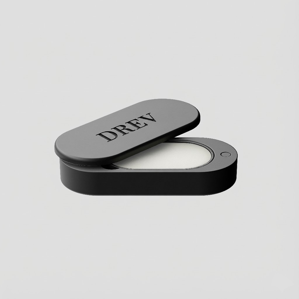 A DREV egy kompakt, újratölthető illatbalzsam tartós, fém tokban.