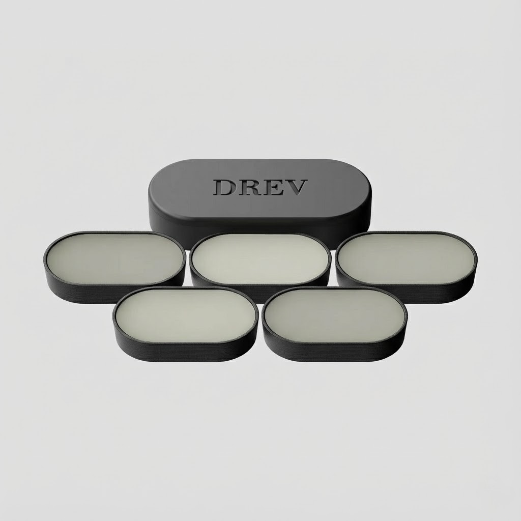 A DREV egy kompakt, újratölthető illatbalzsam tartós, fém tokban.
